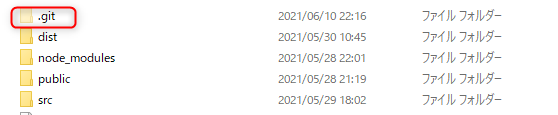 .gitフォルダは隠しフォルダになっているので通常は見えません。